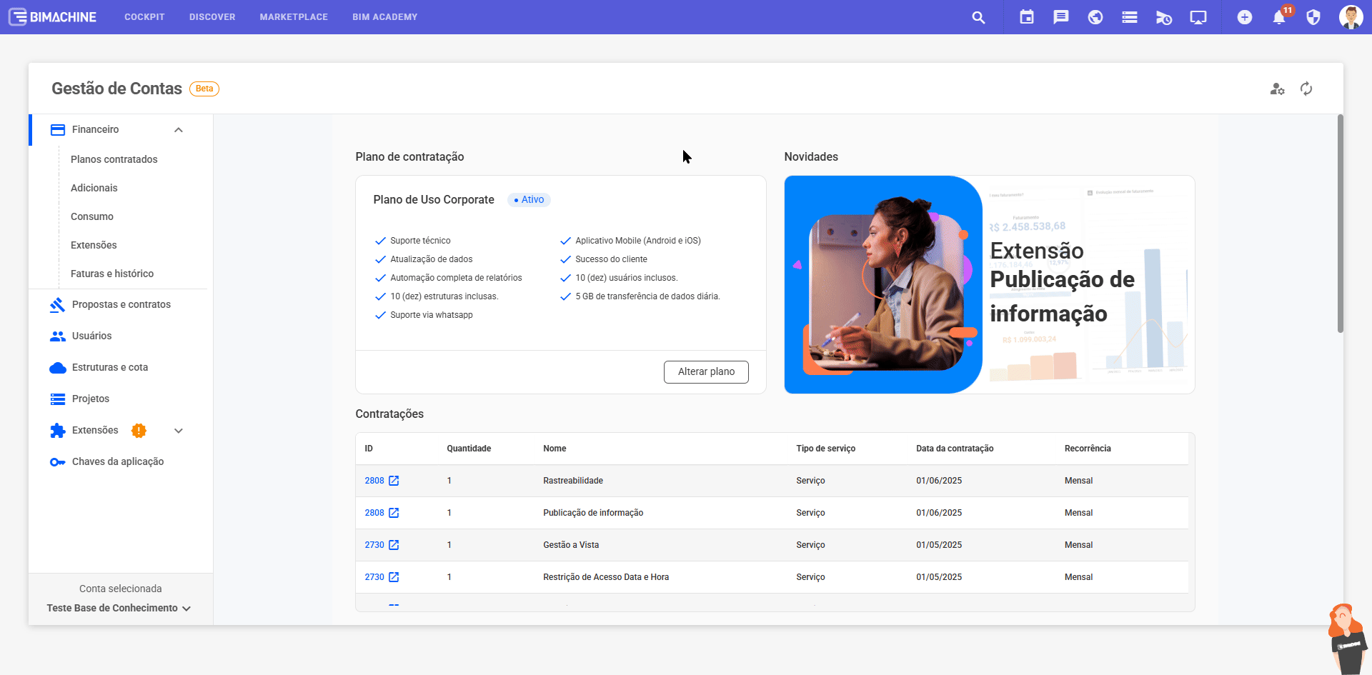 View all the add-ons contracted for the account, ensuring greater control over the resources acquired.