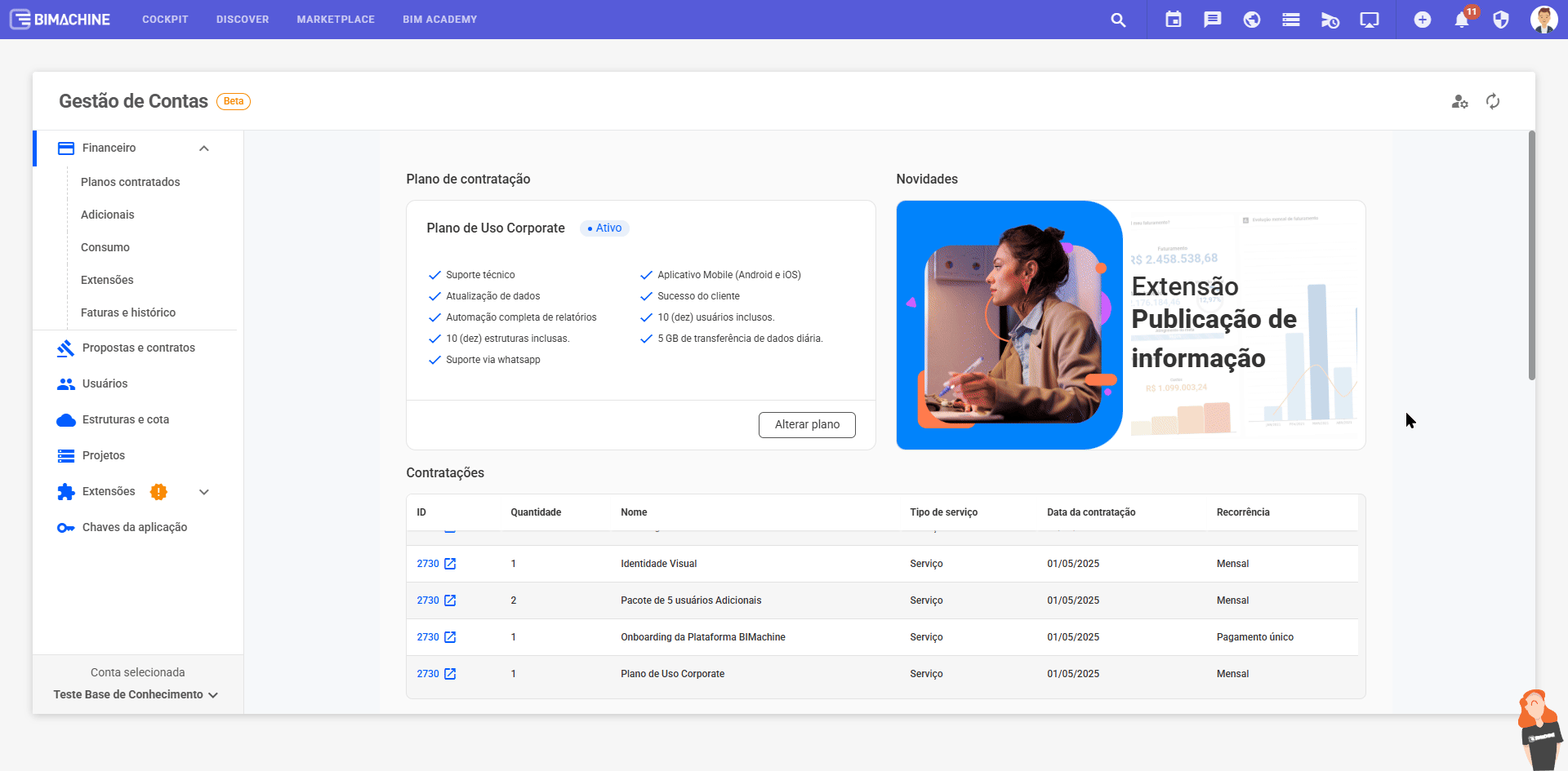 Each section has been designed to provide organized and detailed information, allowing you to track everything from plan status to payment history and usage projections – all in one place. This structure provides more transparency, autonomy and secure, efficient financial control.
