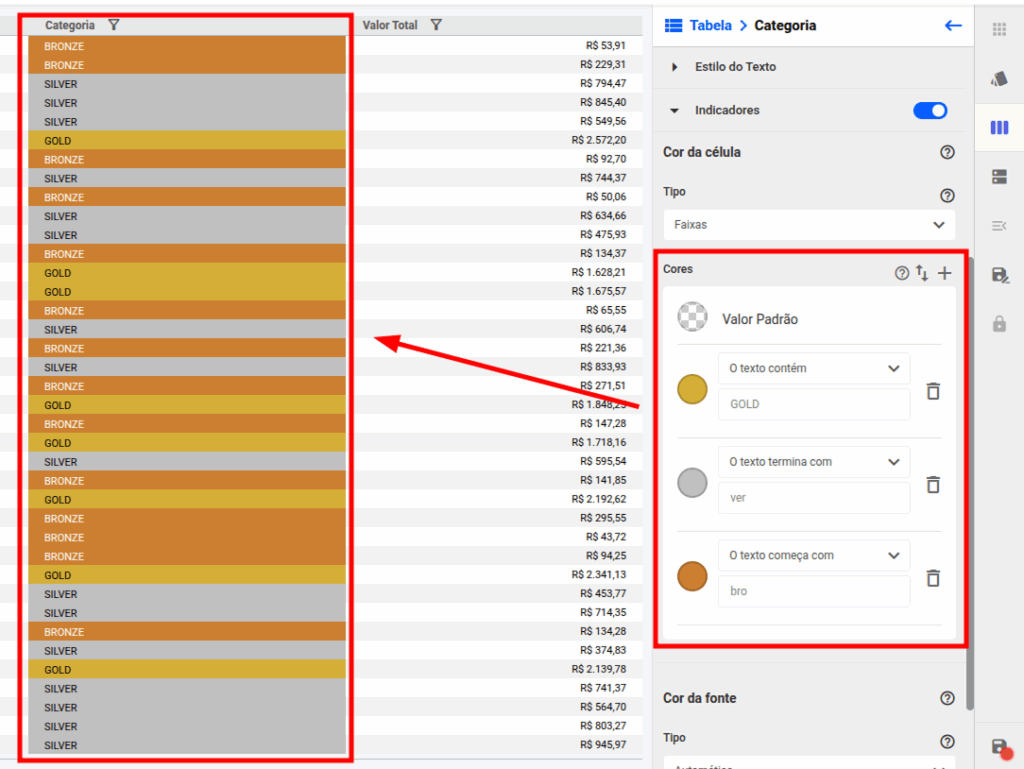 Além dos campos numéricos, você também pode aplicar formatação condicional em campos regulares.